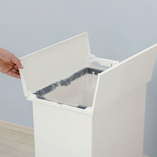 ●メーカー…テラモト●型番…DS-218-845-8●容量…45L●サイズ(mm)(W×D×H)…270×425×480●色…白●重量…1.8kg●材質…ポリプロピレン●蓋が両サイドへ開くため高さを取らず、コンパクトに納まるペダル式ゴミ箱です。●手前に引き出しやすい背面キャスター付●袋止め付●塩ビ不使用