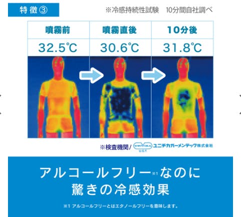 ●内容量…300ml●液性…アルカリ性●シュッとひと吹きで瞬間冷却します。●揮発しにくいので、ひんやり成分が衣類にとどまる時間が長く、リフレッシュ感・ひんやり爽快感が持続します。●衣類の消臭・抗菌効果もあります。●アルコール0%