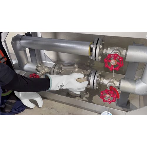 ●メーカー…ショーワグローブ●型番…HW900●サイズ…L●全長(mm)…300●掌周り(mm)…240●中指長さ(mm)…80●厚み…3.5mm●耐熱温度…200℃●推奨使用時間…200℃:約10秒以内150℃:約20秒以内●材質…表:シリコーン(樹脂部)、ナイロン(繊維部)裏:ポリエステル・ポリウレタン(繊維部)カフ:合成皮革ループタグ:ポリエステル●カラー…本体:ホワイト裾:ライトブルー●プラント設備のメンテナンスや高温の器具や部品の取り扱いに