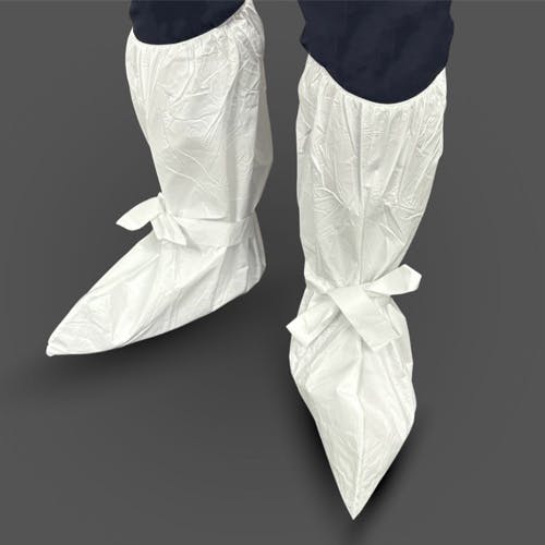 ●メーカー…3M●型番…440●サイズ…フリー●足長…約45cm●高さ…約40cm●材質…ポリエチレンフィルムラミネート不織布●カラー…白●入数…20足入り●有害粉じんなどの化学物質から足元をガードするオーバーブーツです。●アスベスト作業、放射性粉じん作業などに適しています。●本体生地は透湿性のあるポリエチレンフィルムラミネート不織布です。●ひもで縛ることで、足首のダブつきを軽減できます。●高いフィット性を実現するために上部にゴムを編みこんでいます。