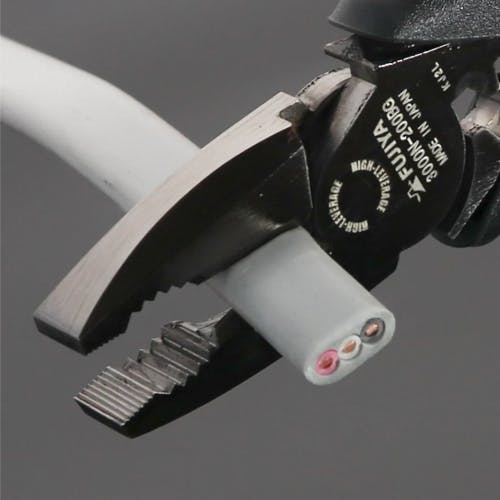 ●メーカー…フジ矢(FUJIYA)●型番…3000N-200BG●全長(mm)…202●切断能力…鉄線:φ3.4mm銅線:φ4.0mmピアノ線:φ1.6mmVA線(VVF):2.0mm×3心●圧着能力…1.25~2.0平方ミリメートル●重量…270g●材質…特殊鋼●支点を切断部分に近づける偏芯機構を採用、この設計により、テコの原理が最大限に活かされ、従来の工具よりも少ない力で切断が可能です。