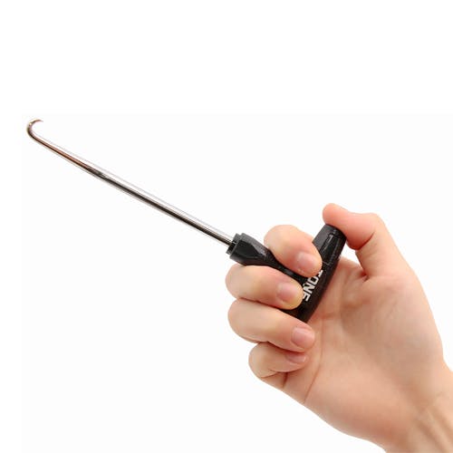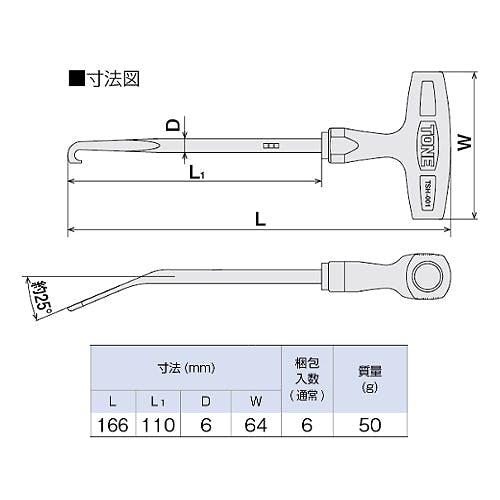 ●メーカー…TONE●型番…TSH-001●全長…166mm●軸長…110mm●軸径…6mm●ハンドル幅(持ち手部分)…64mm●重量…50g●材質…本体:スチールハンドル:樹脂●ドラムブレーキやオートバイのマフラーなどに使用されているスプリング脱着専用の工具です。●握りやすい樹脂グリップ●フックに引っ掛かりやすい先端形状
