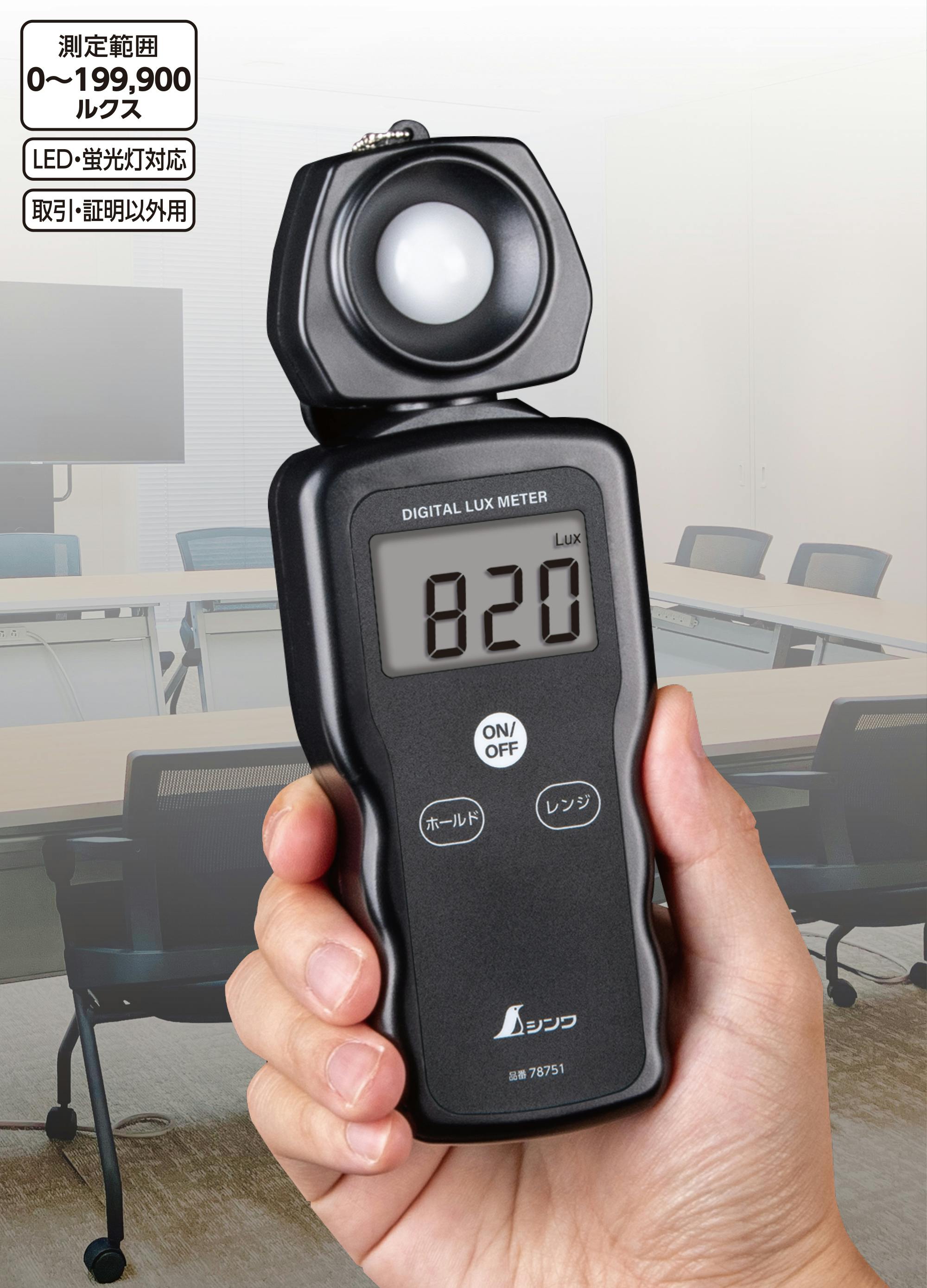 ●使用温湿度…温度:0~40℃ 湿度:70%以下●保管温湿度…温度:-10~50℃湿度:80%以下●電源…9V電池×1個(付属)●サイズ…185×68×38mm●重量…175g(電池含)●材質…本体・受光部・受光部フタ:ABS樹脂●機能…ホールド機能●三脚取り付けネジ…1/4インチ●用途…事務所、作業現場などの照度管理に●LED照明の測定ができます。●測定レンジを4段階に切り替えることができます。●数値固定して手元で読み取れるホールド機能付です。