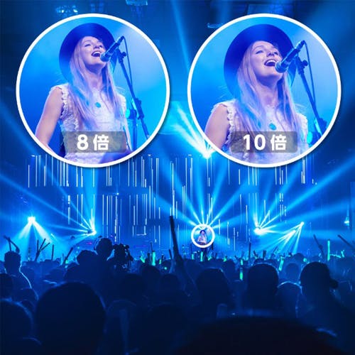 ●アーティストの演奏や表情を、最前列感覚で鑑賞屋内なら4~8倍程度の双眼鏡があれば、アーティストの表情やパフォーマンスなど、見たいシーンをクローズアップして楽しめます。10倍なら、さらに見たいシーンをつぶさに見ることが可能。まるで最前列にいるような臨場感で、アーティストをより身近に感じることができ、特別な感動が味わえます。