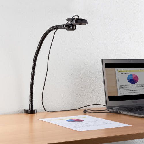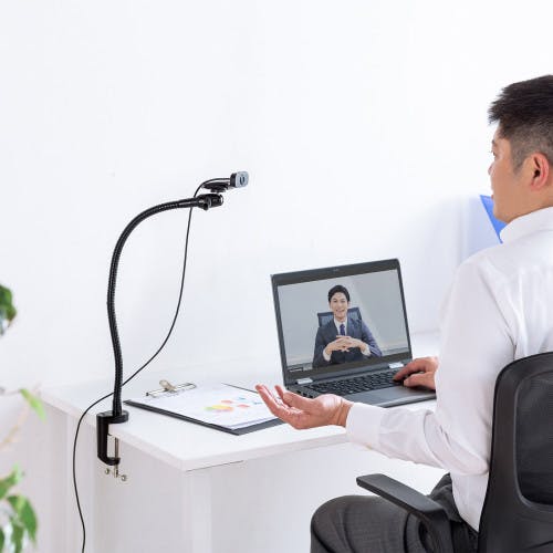 ●対応機器…1/4インチサイズのネジ穴付きで1kgまでのWEBカメラ・GoPro・ハンディカム・一眼レフカメラ・ミラーレス一眼カメラ・プロジェクターなどクランプ対応サイズ:天板・フレームの厚み15~60mm●WEBカメラやデジカメ、ハンディカムなどを設置できるクランプ式のカメラマウントスタンドです。●フレキシブルなロングアームで高さや角度を自由自在に調整できます。●WEB会議やテレワーク、オンライン学習などに映したい角度に固定でき便利です。