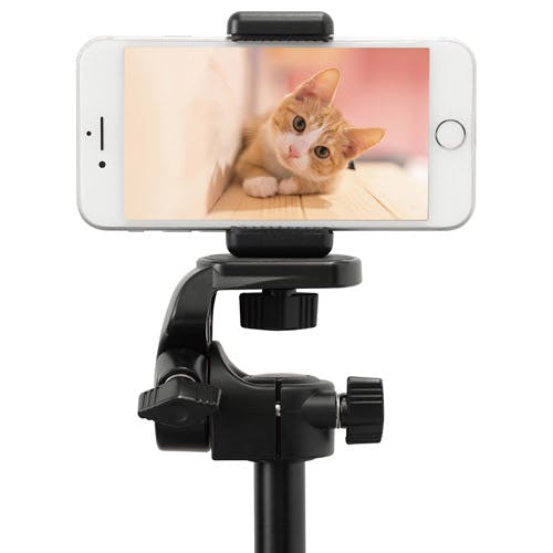 ●スマートフォンを挟むだけの簡単取り付け。単体でもスタンドとして使え、縦置き・横置きが可能。三脚ネジ穴は底面と背面にあります。●カメラの上下・左右を独立して操作できるシンプルな雲台を装備。ハンドル棒を固定ツマミに変更し、徹底した軽量化を図っています。●ステーにあるフル開脚ボタンを押すと、ローポジション撮影が可能です。小さな花の接写などに便利です。●マクロ撮影に特化した超ミニサイズ。カメラバッグやアウトドアリュックなどに入れておいても邪魔になりません。