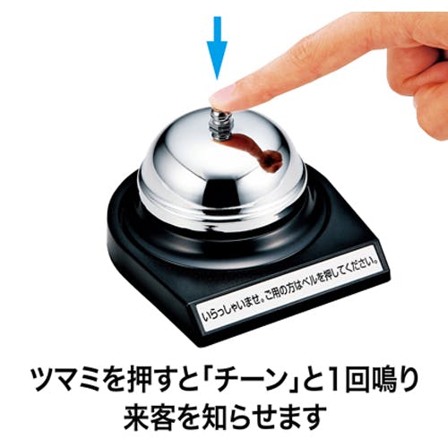 ●サイズ…99×110×70mm●材質…本体:スチール、テーブル:ABS●専用のインフォメーションテーブル付き●上のボタンを押すと「チーン」と1回鳴ります。●本体とテーブルは分かれています。