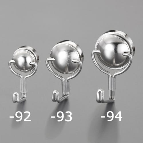 ●耐荷重(kg)…10(天井吊:20)●面サイズ(mm)…φ35●口幅(mm)…7●材質…本体:スチールアーム部:ステンレス裏面:ネオジム磁石●高機能磁石で小さくても超強力磁力を発揮するコンパクトマグネットフック。●裏面にはウレタンマイクロ加工シート貼合で磁着面をしっかりグリップします。●サビにくいステンレスアーム●小さなスペースでも使えます。