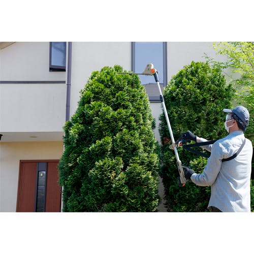 ●付属品…2.0Ahバッテリー×1、USB充電ケーブル、補助ハンドル、肩掛けベルト、ブレードケース●ヘッド調整角度…-90°~90°●両刃駆動式●初めてでも扱いやすい、コードレスポールヘッジトリマーです。●「両刃タイプ」で刃の向きを気にせず使えるため、効率がよく作業ができます。●枝をガッチリ刈り取る「二面研磨刃」です。●軽量設計なので、持ち運びや長時間の作業も負担を感じにくいです。