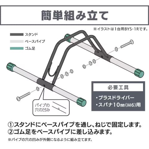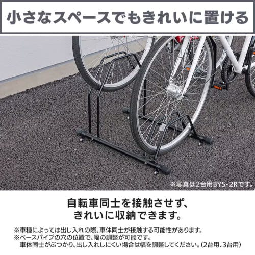 ●メーカー…アイリスオーヤマ(IRIS OHYAMA)●型番…BYS-3-R●※注意※…【お客様組立品】●適合タイヤサイズ…低い段:タイヤ直径/20インチ以上、タイヤ幅5.5cm以下高い段:タイヤ直径/22インチ以上、タイヤ幅5.5cm以下●サイズ…1070×430×475●材質…本体:金属(鋼)(ポリエステル樹脂塗装)ゴム足:合成ゴム●収納台数…3台●省スペースで置ける段違い構造。●スタンドの高さを変えることで、自転車同士を接触させず、きれいに収納できます。
