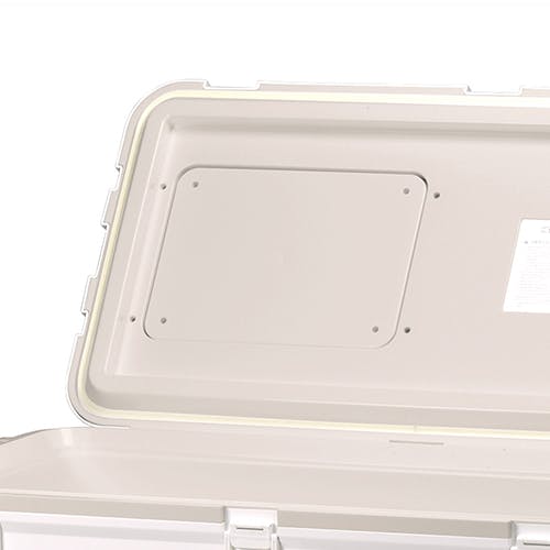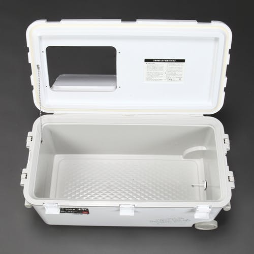 ●形状に沿った成型発泡剤を使用しているので、隙間が最小限になり保冷力が高いです。●バックル5個でフタを押さえるので、冷気をさらに逃げにくいです。●持ちやすいサイドハンドル●冷気を逃さない投入口付き●水抜き栓付き●キャスター付き●日本製