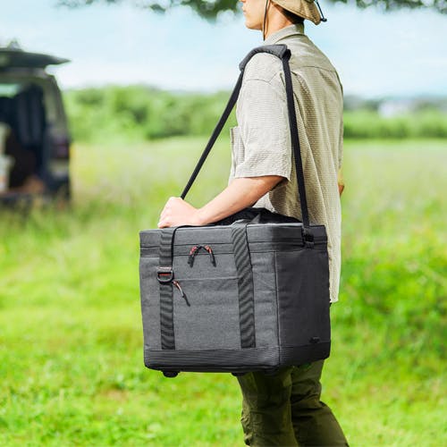 ●メーカー…アイリスオーヤマ(IRIS OHYAMA)●型番…AGSC-40C●容量(L)…40●サイズ(mm)…440×360×370(H)●カラー…チャコールグレー●材質…ポリエステル、PVC、ポリエチレン、PEVA●重量…約2.7kg●最大収納容量目安…500mlペットボトル:34本2Lペットボトル:9本●最大保冷時間…約5.4日