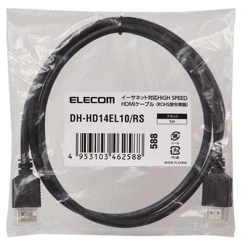 ●メーカー…エレコム●型番…DH-HD14EL10/RS●ケーブル長…1m●ケーブル太さ…約5.5mm●対応機種…HDMI(タイプA・19ピン)側:HDMI入力端子を持つ液晶テレビ・プラズマテレビ・プロジェクター等HDMI(タイプA・19ピン)側:HDMI出力端子を持つAV機器・ゲーム機等●規格…High Speed HDMI Cable with Ethernet (HDMI 1.4a)認証●コネクター形状…HDMIプラグ(タイプA・19ピン)