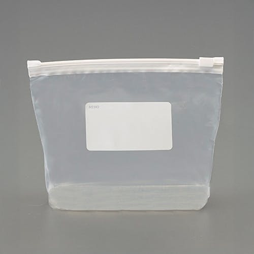 ●用途…事業所での小物整理や出張、旅行、アウトドアに●チャック下サイズ…200×150mm●厚み…0.065mm●入数…10枚●材質…本体:ポリエチレンスライダー:ポリプロピレン●表面にメモスペース付き●マチ付き(底60mm)なので、立てて使用できます。●透明で中身が見えるので一目で見分けやすい。●スライドジッパー付きでスムーズに開閉し、仕分けに便利です。●低密度ポリエチレン使用/非食品用●※火のそばに置かないでください。