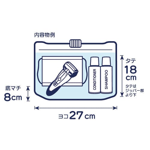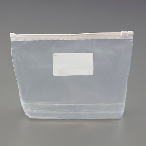 ●用途…事業所での小物整理や出張、旅行、アウトドアに●チャック下サイズ…270×180mm●厚み…0.065mm●入数…8枚●材質…本体:ポリエチレンスライダー:ポリプロピレン●表面にメモスペース付き●マチ付き(底80mm)なので、立てて使用できます。●透明で中身が見えるので一目で見分けやすい。●スライドジッパー付きでスムーズに開閉し、仕分けに便利です。●低密度ポリエチレン使用/非食品用●※火のそばに置かないでください。