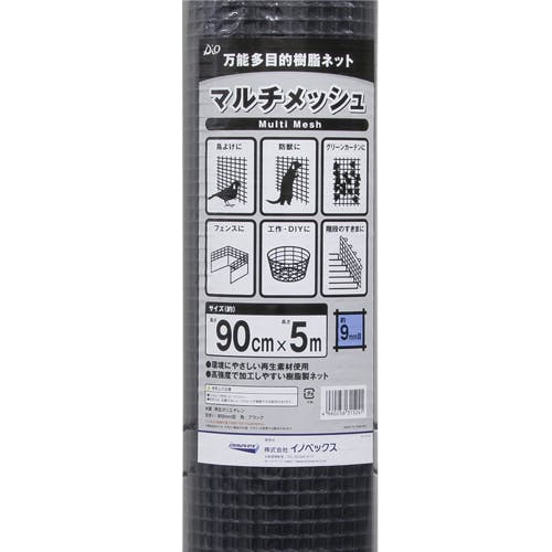 ●メーカー…イノベックス(ダイオ化成)●型番…マルチメッシュ●サイズ(m)…0.9×5●目合(mm)…9●カラー…黒●材質…再生ポリエチレン●重量(g)…1750●約9mmの黒い樹脂製メッシュ。●糸で編んだネットよりしっかりとした硬さがあり、強度耐久性も優れています。●金網と比較すると軽く、カットなどの加工が容易で大変使いやすい素材です。