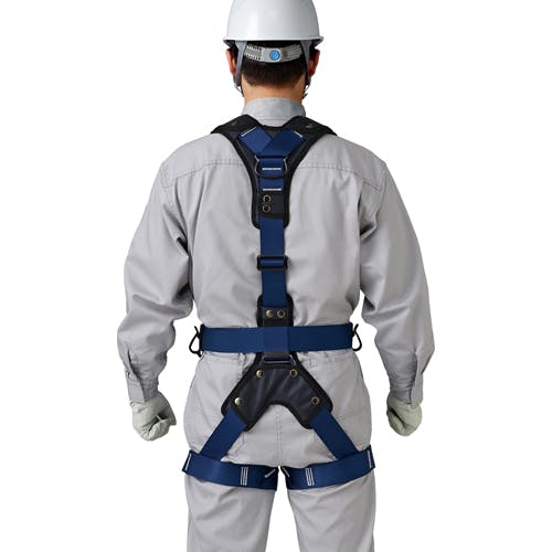 ●動きの激しい作業でも緩みにくく、さらに耐久性に優れた金属製の胴ベルトアタッチメントを採用したプロ仕様。●肩パッド、腰パッドを標準装備し、重量物を運んだり、重い工具をつけた時の身体への負担を軽減します。●厚生労働省「墜落制止用器具の規格」適合品