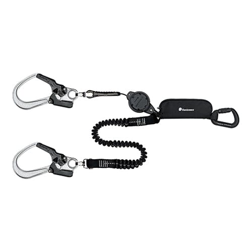 ●付属品…デュアルホルダー×2エンドクリップ:×4作業ベルトアタッチメント×2フック掛け×2絡み防止ロープ×1●〈ランヤード仕様〉●ストラップサイズ…巻取:18×700~1620mm伸縮:25×1100~1600mm●材質…ロープ部:ポリエステルフック部:スチール+アルミ●第一種ショックアブソーバ●巻取+伸縮式●背中のベルト長さを調整できるアジャスター付●調整箇所が多いので、着用者の体形に合わせてぴったりとフィットさせることができます。