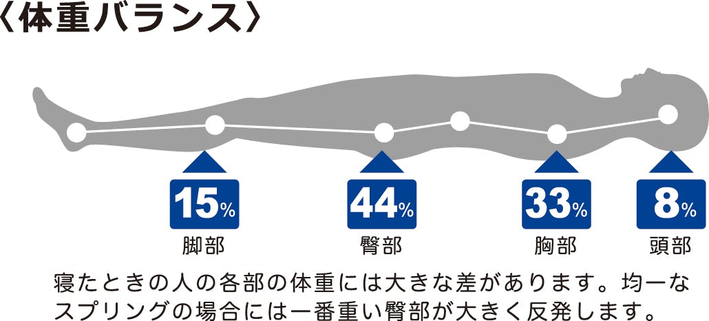 従来モデルよりも約80%増のスプリングを内蔵。腰に優しい、腰部補強・エッジ部補強モデル。保温性、通気性が抜群の羊毛綿入りです。仰向け寝などにおすすめのミディアムハード仕上げの硬さです。
