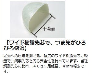 JIS T8101 CI/S/P1/F1●足幅サイズ:EEE●クッション性と耐久性に優れたウレタン2層底です。●足先への圧迫を抑える、幅広のワイド樹脂先芯。軽量で、鋼製先芯と同じ安全性を持っています。当社鋼製先芯に比べ、40g/足軽量、4mm幅広です。●油や水などの滑りやすい床面での作業に適した滑りにくい靴です。