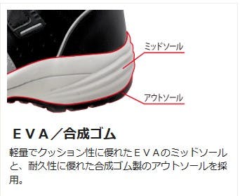 ●先芯:プロテクトウズ5(ワイド樹脂)●甲被:人工皮革/メッシュ●中敷:EVAカップインソール(抗菌・防臭)●靴底:EVA/合成ゴム 中国・ミャンマー