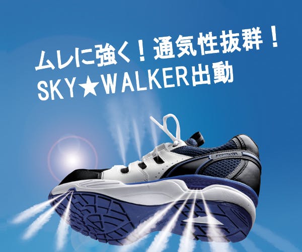 ●JSAA認定 A種合成皮革製プロスニーカー/踵衝撃吸収●足幅サイズ:EEE●靴底にある通気孔から靴内に溜った熱を効率良く逃します。通気孔はサイド方向に開いているので、靴内部へ異物や水などが侵入しにくくなっています。●足先ゆったりのワイド設計の樹脂先芯を採用。JSAA規格A種認定の安全性能です。●衝撃吸収性に優れたマテリアルをかかと土踏まずに装着したインソールを採用しました。
