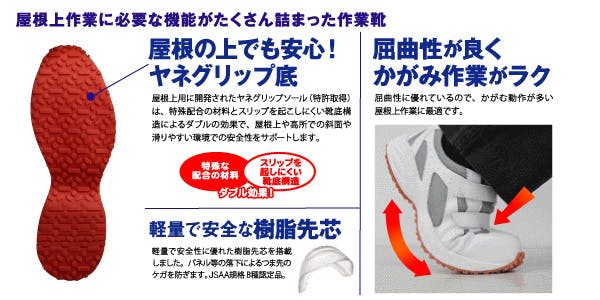●JSAA認定 B種合成皮革製プロスニーカー/踵衝撃吸収/耐滑●足幅サイズ:EEE●特殊配合の材料と、スリップを起こしにくい靴底構造のダブル効果で、滑りやすい環境での安全性をサポートします。●軽量でクッション性と耐久性にも優れ、水や油等の滑りやすい床面でも滑りにくいハイグリップソールです。●クッション性に優れた素材を使用し、足にかかる衝撃を軽減します。
