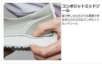 ●足幅サイズ:EEE●指で押したただけでも実感できるほどふわふわなコンポジットミッドソール。優れた反発力で地面を踏みつけた際に次の一歩へとスムーズに動けます。●取外し可能で通気性&クッション性も良いEVAインソール裏面には通気性を高める通気孔加工を施しています。。●塗り床・グレーチング床・ステンレス床・タイル床・細かい凸凹床などが混在する環境でも高い耐滑性能を発揮します。