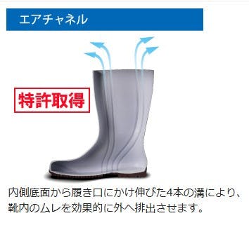 ●足幅サイズ:EEE●内側底面から履き口にかけ伸びた4本の溝により、靴内のムレを効果的に外へ排出させます●長靴同士の『くっつき』が原因によるつまずきや転倒を防止するために、長靴に特殊な加工が施されています。従来の製品は内側3カ所に加工していましたが、NHG2000シリーズは全面に加工を施し、さらに安全性が高くなっています●筒が細い、または太い場合には、お手持ちの紐等を使用し調整可能な穴あけ溝付