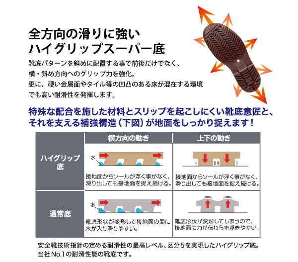 ●足幅サイズ:EEE●内側底面から履き口にかけ伸びた4本の溝により、靴内のムレを効果的に外へ排出させます●長靴同士の『くっつき』が原因によるつまずきや転倒を防止するために、長靴に特殊な加工が施されています。従来の製品は内側3カ所に加工していましたが、NHG2000シリーズは全面に加工を施し、さらに安全性が高くなっています●筒が細い、または太い場合には、お手持ちの紐等を使用し調整可能な穴あけ溝付