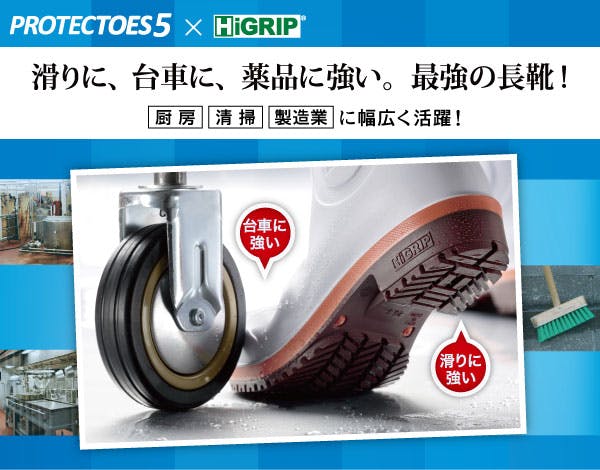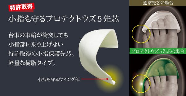 ●先芯:プロテクトウズ5先芯(ワイド樹脂)●甲被:PVC●中敷:EVAインソール(通気穴つき)●靴底:PVC 日本