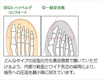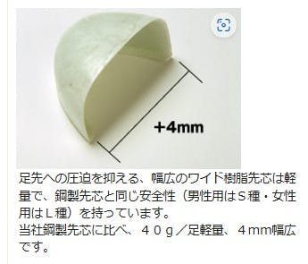●JIS T8103 (ED-P/C2)/CI/S/P1/F1●エコマーク認定品(エコマーク認定番号:09 143 007)●足先への圧迫を抑える、幅広のワイド樹脂先芯は軽量で、鋼製先芯と同じ安全性(男性用はS種・女性用はL種)を持っています。