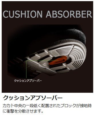 ●JIS T8101 CI/S/P1/F2●クッションアブソーバー:カカト中央の一段低く配置されたブロックが接地時に衝撃を分散させます。●エグリ形状になったソールが歩行時に形状が変形することで衝撃を吸収しクッション性を向上。●旧コンフォートと比べ、よりつま先を高めに設計。それにより段差での引っ掛かりを軽減し、つまずきによる転倒事故防止に役立ちます。