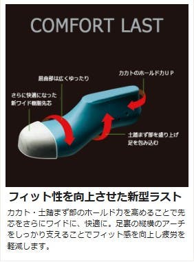●JIS T8101 CI/S/P1/F2●クッションアブソーバー:カカト中央の一段低く配置されたブロックが接地時に衝撃を分散させます。●エグリ形状になったソールが歩行時に形状が変形することで衝撃を吸収しクッション性を向上。●旧コンフォートと比べ、よりつま先を高めに設計。それにより段差での引っ掛かりを軽減し、つまずきによる転倒事故防止に役立ちます。