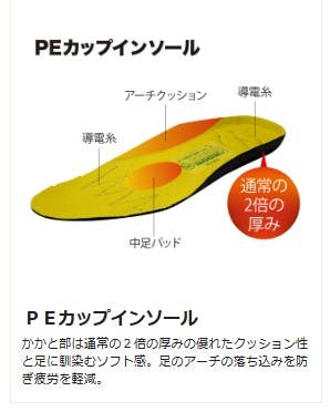 ●靴底には一般的な発泡ポリウレタンより1.5倍もの耐摩耗性能を持つスーパーPUを採用。●幅広で履きやすく、軽量な樹脂先芯を使用しています。●足裏形状に合わせた立体的に成型した靴底。●PEカップインソール:かかと部は通常の2倍の厚みの優れたクッション性と足に馴染むソフト感。足のアーチの落ち込みを防ぎ疲労を軽減。●足幅サイズ:EEE●標準高さ:240mm※●標準高さは、26.0cmを基準としています。●標準重量:1,070g/足※両足での重さです※●標準重量は、26.0cmを基準としています。