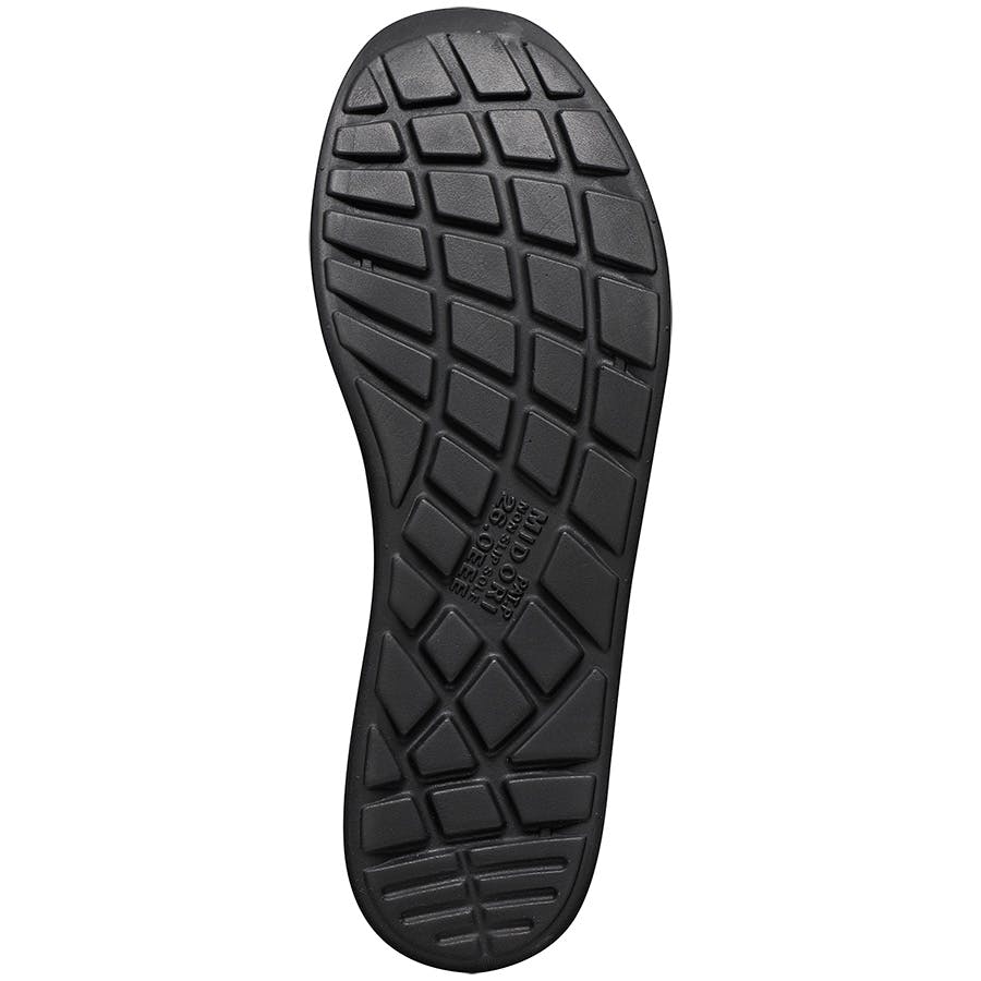 ●特殊な配合を施した材料とスリップを起こしにくい靴底意匠とそれを支える補強構造のトリプル効果で、安全靴・作業靴技術指針で定められた耐滑性能の最高区分5を実現しています。さらに、詰まりにくい意匠を採用、靴底詰まりによる耐滑性の低下防ぎます。