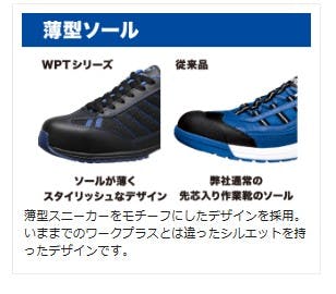 ●JSAA認定 A種人工皮革製プロスニーカー/踵衝撃吸収/耐滑●靴の磨り減りによる交換時期がわかるスリップサイン付き。3つのうち2つのスリップサインが磨り減ったら交換時期。●薄型スニーカーをモチーフにしたデザインを採用。いままでのワークプラスとは違ったシルエットを持ったデザインです。