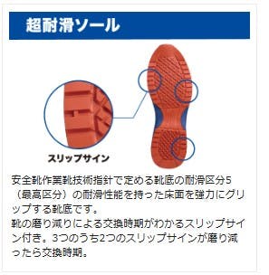 ●鋼製先芯と比べ、樹脂製の為、サビずに冷えにくく幅広なワイド樹脂先芯。JSAA認定A種の安全性能。●軽量でクッション性・耐久性にも優れ水・油や水などの滑りやすい床でも滑りにくいハイグリップソールです。●クッション性に優れた素材を使用し足にかかる衝撃を軽減します。●夜間での作業でも光を反射させ自分の位置を知らせることが可能なリフレクター付き。●足幅サイズ:EEE●標準重量:650g/足※両足での重さです※●標準重量は、26.0cmを基準としています。