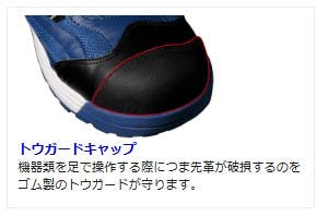●JSAA認定 A種合成皮革製プロスニーカー/踵衝撃吸収●靴底のかかと部分に衝撃吸収性に優れたクッション材を内装しました。かかとからの衝撃を吸収し、疲労軽減に貢献します。●約4mmワイドで40g/足軽量化(当社比)を図った履きやすい樹脂製先芯を採用。●発泡EVAと合成ゴムの2層底。軽量でクッション性に優れています。●夜間での作業でも光を反射させ自分の位置を知らせることが可能なリフレクター付き。