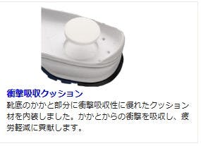●JSAA認定 A種合成皮革製プロスニーカー/踵衝撃吸収●底減りしやすいかかと部分に耐摩耗性に優れた配合を施した合成ゴムを採用しました。●靴底のかかと部分に衝撃吸収性に優れたクッション材を内装しました。かかとからの衝撃を吸収し、疲労軽減に貢献します。●約4mmワイドで40g/足軽量化(当社比)を図った履きやすい樹脂製先芯を採用。鋼製先芯と同じJSAA規格A種性能。