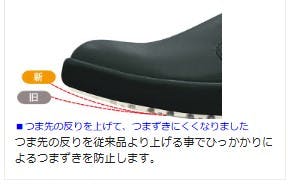 ●ミッドソールの製法を変える事により、耐久性が向上しクッション効果が長続きするようになりました。●つま先の反りを従来品より上げる事でひっかかりによるつまずきを防止します。●交換目安がわかる「スリップサイン」付で、靴底のすり減りによる耐滑機能低下をお知らせします。