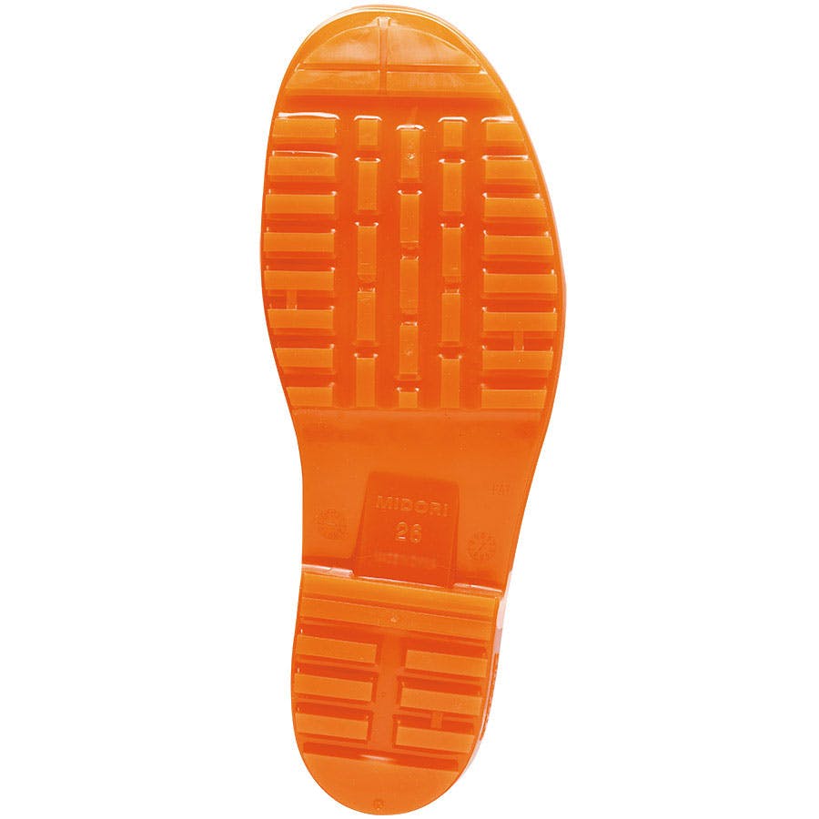 ●靴底の減りによる靴の交換時期がわかるスリップサイン付き。●長靴同士の『くっつき』が原因によるつまずきや転倒を防止するために、表面に特殊な加工を施しています。●内側底面から履き口にかけ伸びた4本のエアチャネルにより、靴内のムレを効果的に逃します。