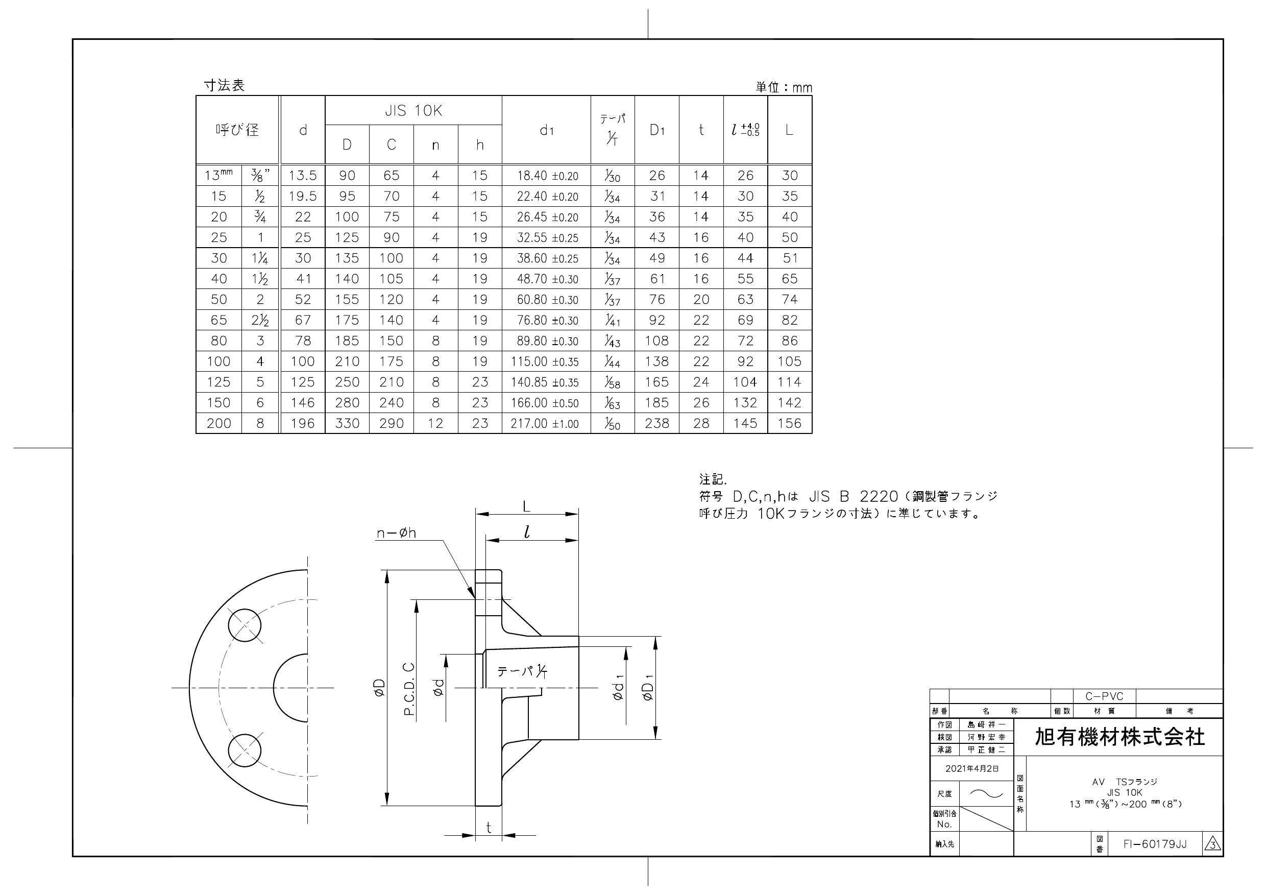旭有機材 AV 10K HTフランジ C-PVC製 50A 配管部材 フランジ・パッキン 00000053614【別送品】