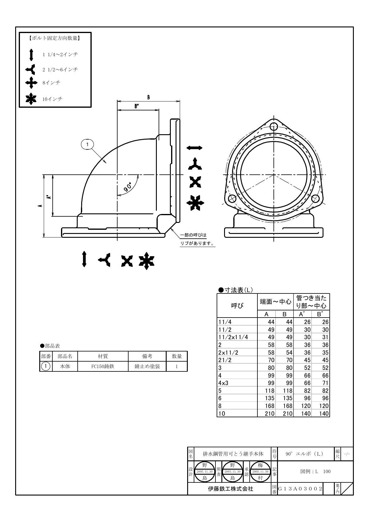 伊藤鉄工 I-90L-H 50AX40A IML・NY-II・IML-G 90L 90°エルボ (共用本体) 50AX40A 配管部材 排水鋼管用可とう継手(本体) 00000136533【別送品】