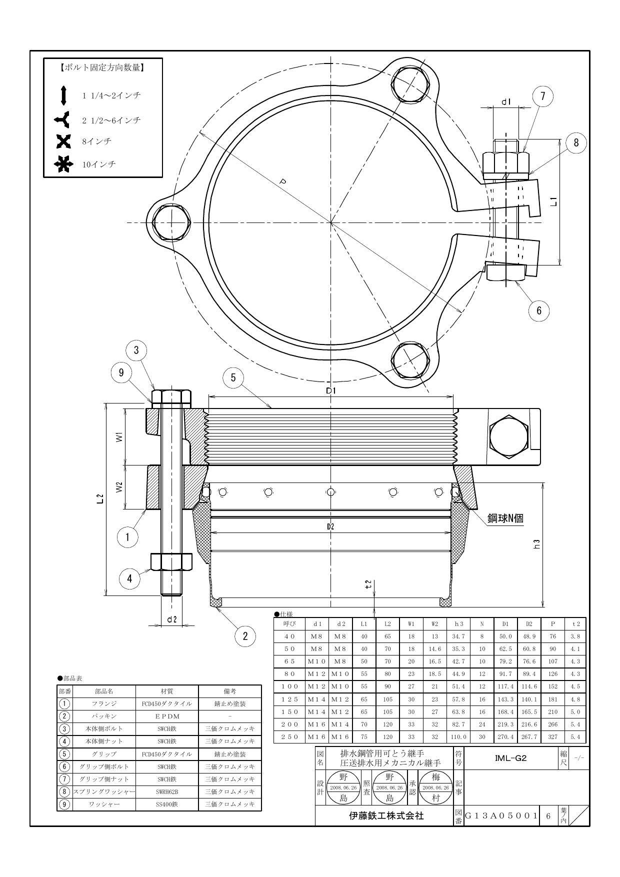 伊藤鉄工 I-IML-G2 50A IML-G2 グリップセット(圧送排水用) (一口一面用)【新型】 50A 配管部材 排水鋼管用可とう継手 00000156452【別送品】