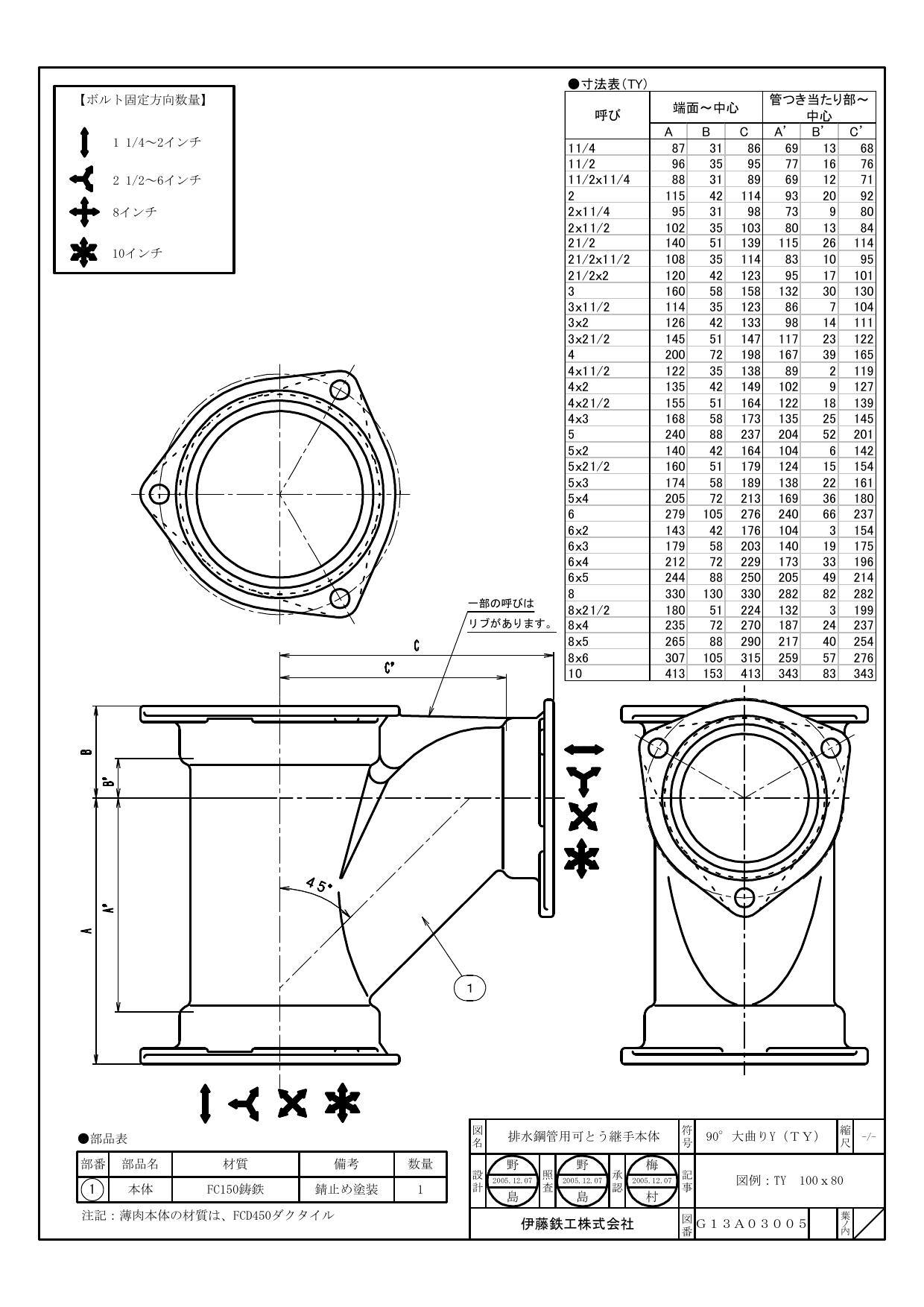 伊藤鉄工 I-TY-H 65A IML・NY-II・IML-G TY 90°大曲りY (共用本体) 65A 配管部材 排水鋼管用可とう継手(本体) 00000162813【別送品】