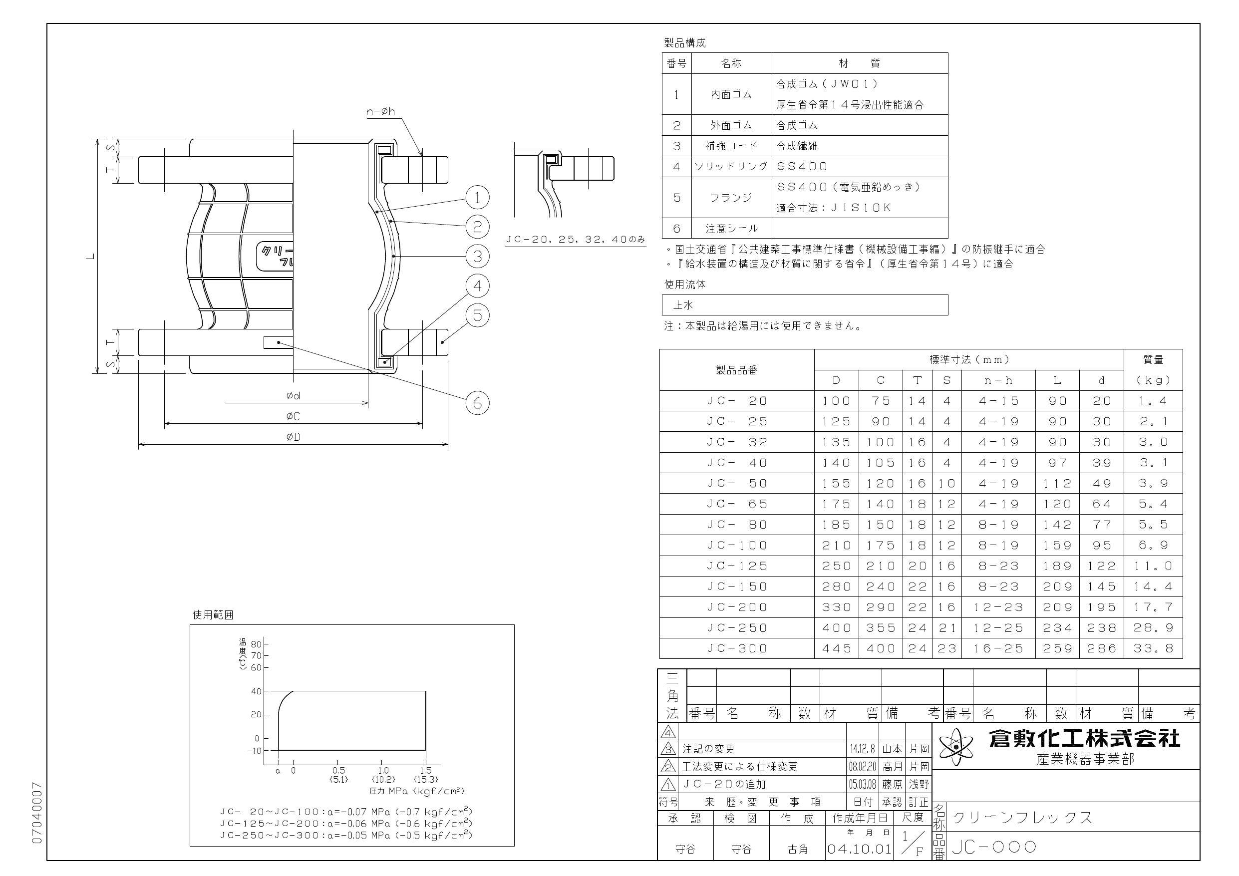倉敷化工 JC-10F 50A JC-10F 球型 10KF クリーンフレックス【給水用・SS400/10K-F】 50A 配管部材 クリーンフレックス 鉄フランジ10K型 00000173848【別送品】