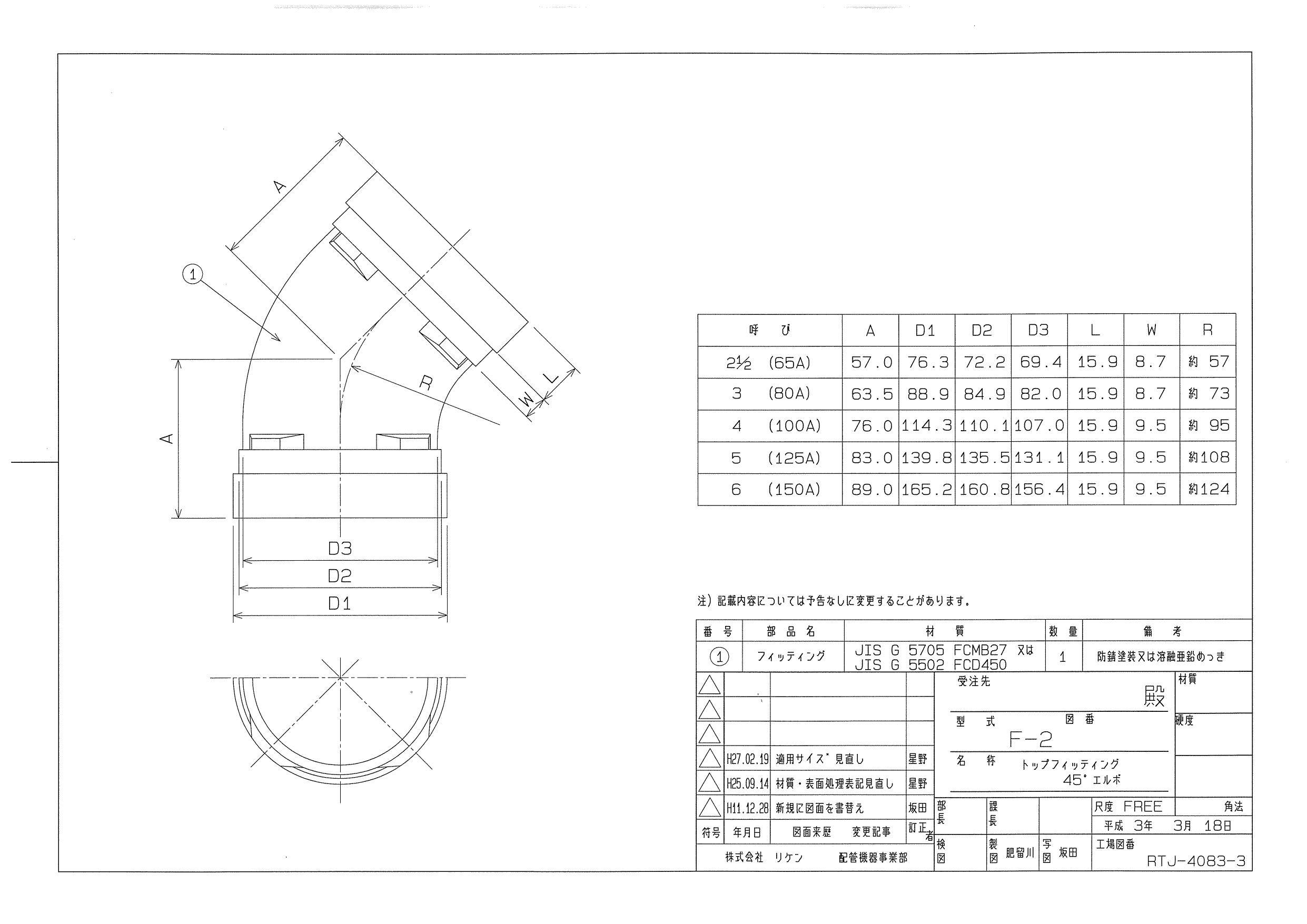 リケン L45(F-2) トップフィッティング 45°エルボ 一次防錆塗装品 125A 配管部材 トップフィツティング【一次防錆塗装品】 00000192263【別送品】