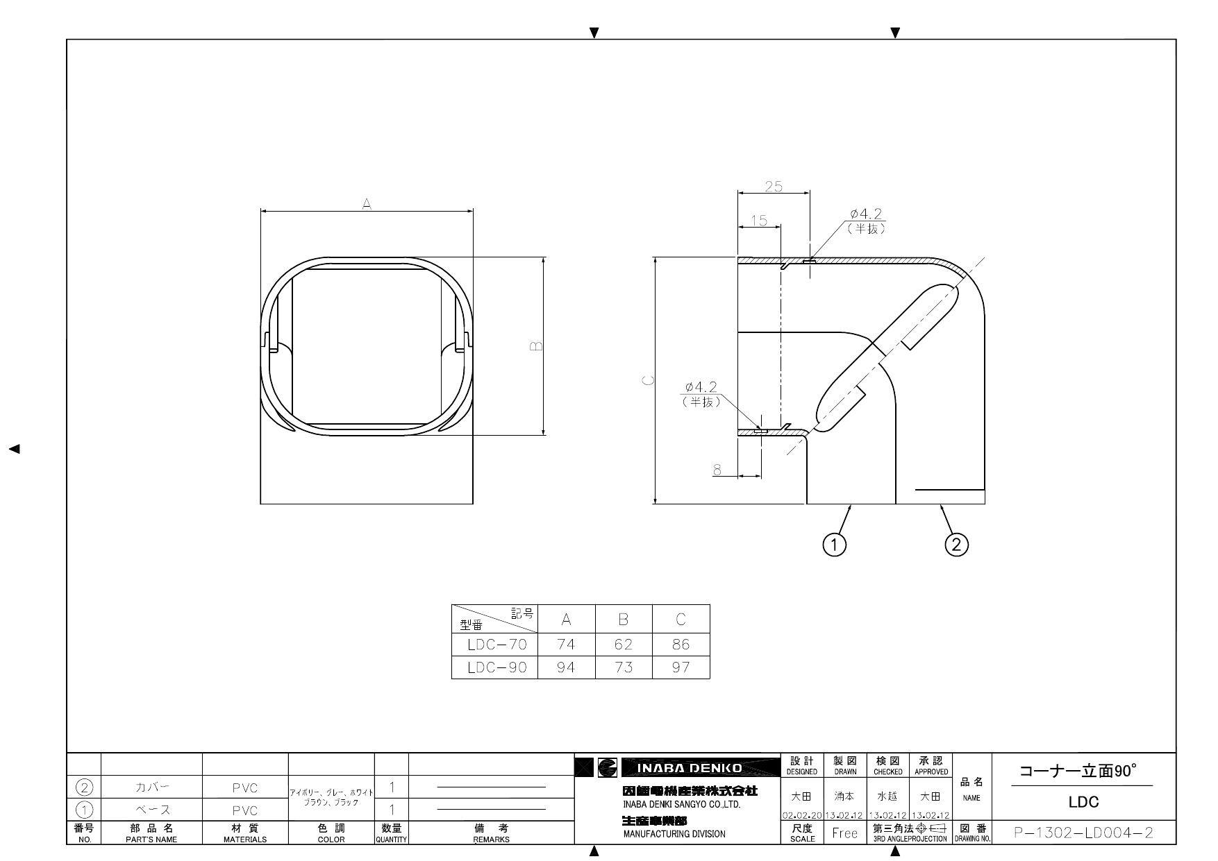 因幡電機産業 LDC-90-I コーナー立面90° アイボリー 00000193809【別送品】