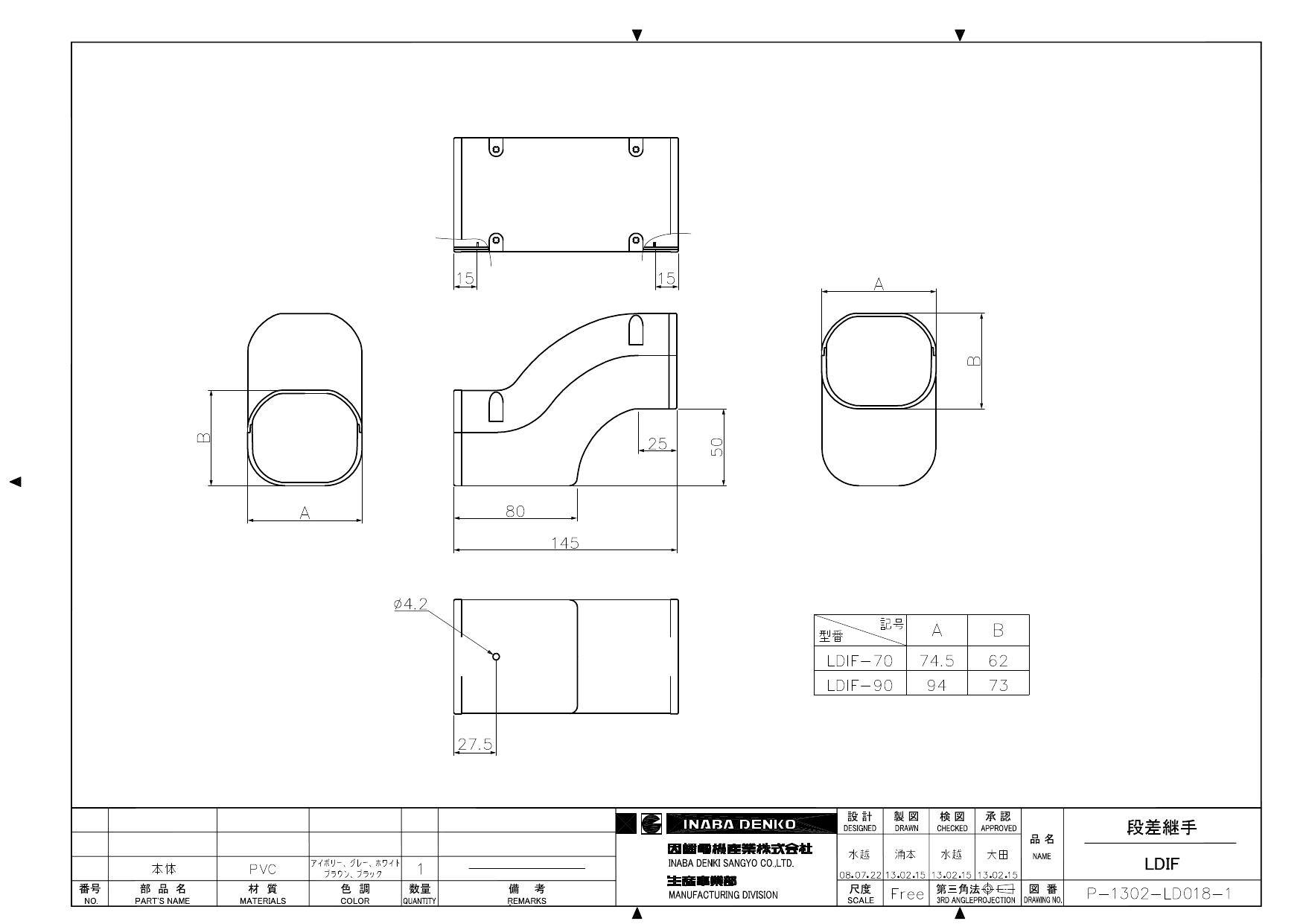 因幡電機産業 LDIF-70-I 段差継手 アイボリー 00000193834【別送品】